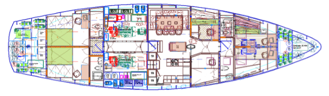 Length over all: 25.9 m, Length in water line: 21,8 m, Width at deck: 7,1 m,